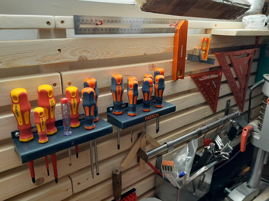Ja, das Set kommt mit zwei stabilen Wandhalterungen, die eine übersichtliche und griffbereite Aufbewahrung der Schraubendreher ermöglichen.